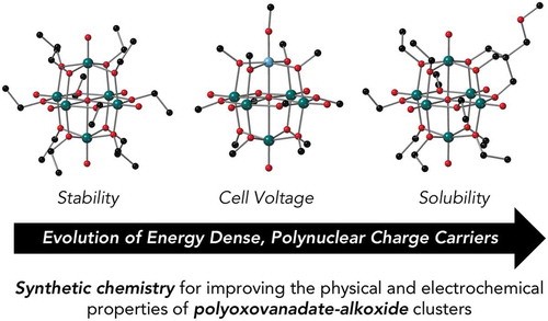 | 75 (14) | VanGelder, L. E; Kosswattaarachchi, A. M.; Forrestel, P.; Cook, T. R.*, Matson, E. M.* Polyoxovanadate-alkoxide Clusters as Multi-electron Charge Carriers for Symmetric Non-aqueous Redox Flow Batteries. Chem. Sci. 2018, 9, 1692. https://doi.org/10.1039/C7SC05295B | ![]() |