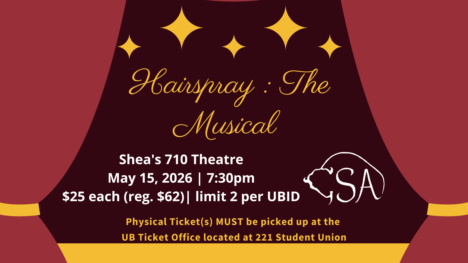 **For ticketing/seating questions or requests, please contact the GSA Programming Coordinator (gsa-programming@buffalo.edu) prior to the ticket distribution.  All requests will be reviewed on a first come, first served basis.**