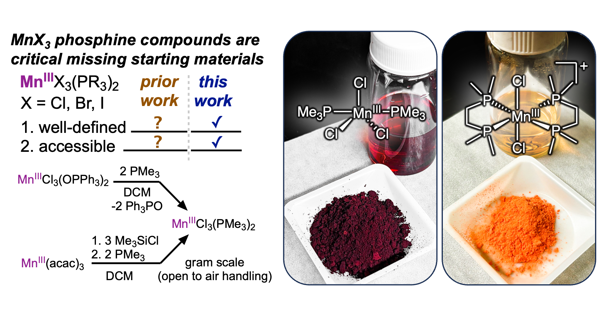 31. Paul, S.; Saju, A.; Cohen, C.; Crawley, M. R.; MacMillan, S. N.; Lacy.* D. C. Synthesis of MnX3 (X = Cl, Br, I) compounds with phosphine (R3P) ligands. Inorg. Chem. 2024, 63, 15791-15803. DOI: https://doi.org/10.1021/acs.inorgchem.4c01820